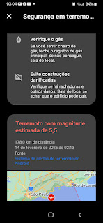 Na madrugada,recebo alerta de terremoto e procedimentos,mediante fatos.